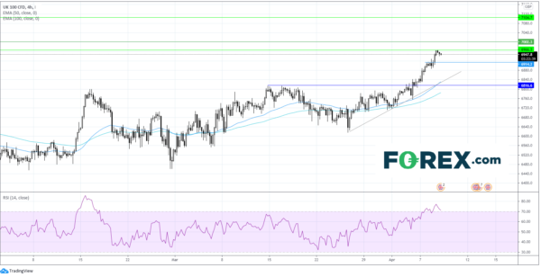After breaking out above 6810/5 earlier in the week the FTSE has surged higher hitting a 13 month high in the previous session.